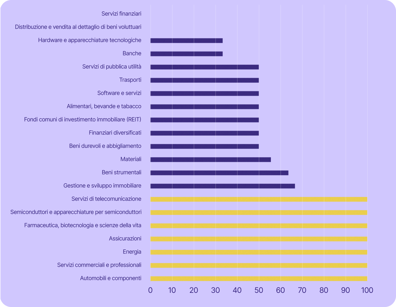 Per la robustezza statistica, non riportiamo i risultati a livello di Paese per i Paesi in cui abbiamo trovato meno di 30 aziende quotate in borsa. Di conseguenza, Paesi come Repubblica Ceca, Estonia, Lettonia, Lituania, Slovacchia e Slovenia non sono trattati individualmente, ma i loro risultati sono inclusi nelle nostre medie e percentuali stimate a livello europeo.