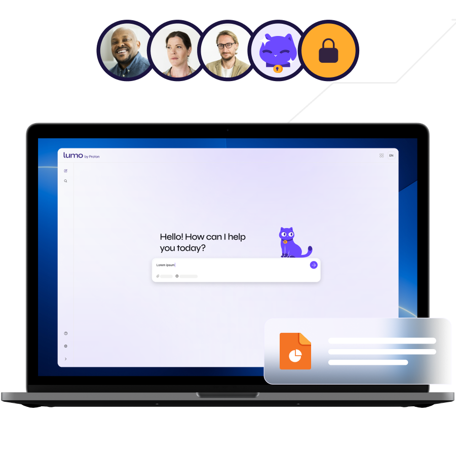 Che tu stia scrivendo bozze di contratti, analizzando dati o esplorando nuove idee, Lumo for Business mantiene le conversazioni del tuo team crittografate e sotto il tuo controllo.
