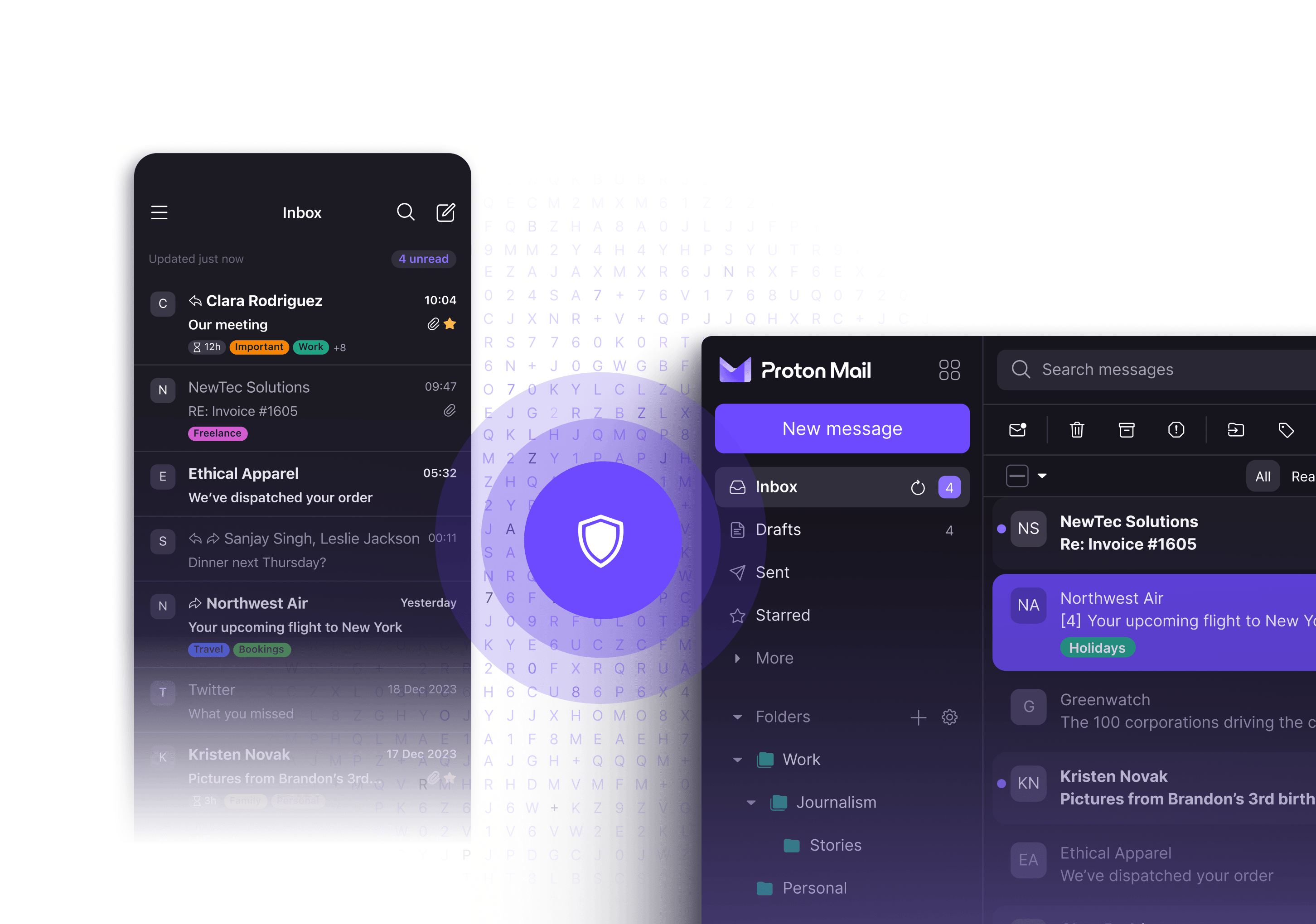 La facilità e la sicurezza di Proton Mail, su tutti i tuoi dispositivi.