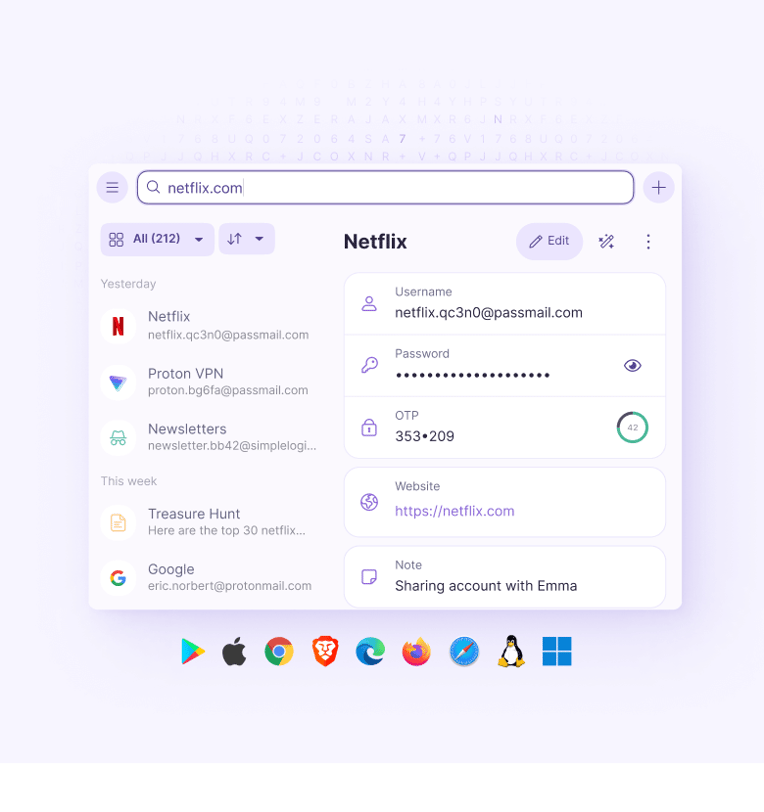 Archivia, condividi e accedi in sicurezza alle tue password, note e molto altro utilizzando Proton Pass, il nostro gestore di password crittografato.