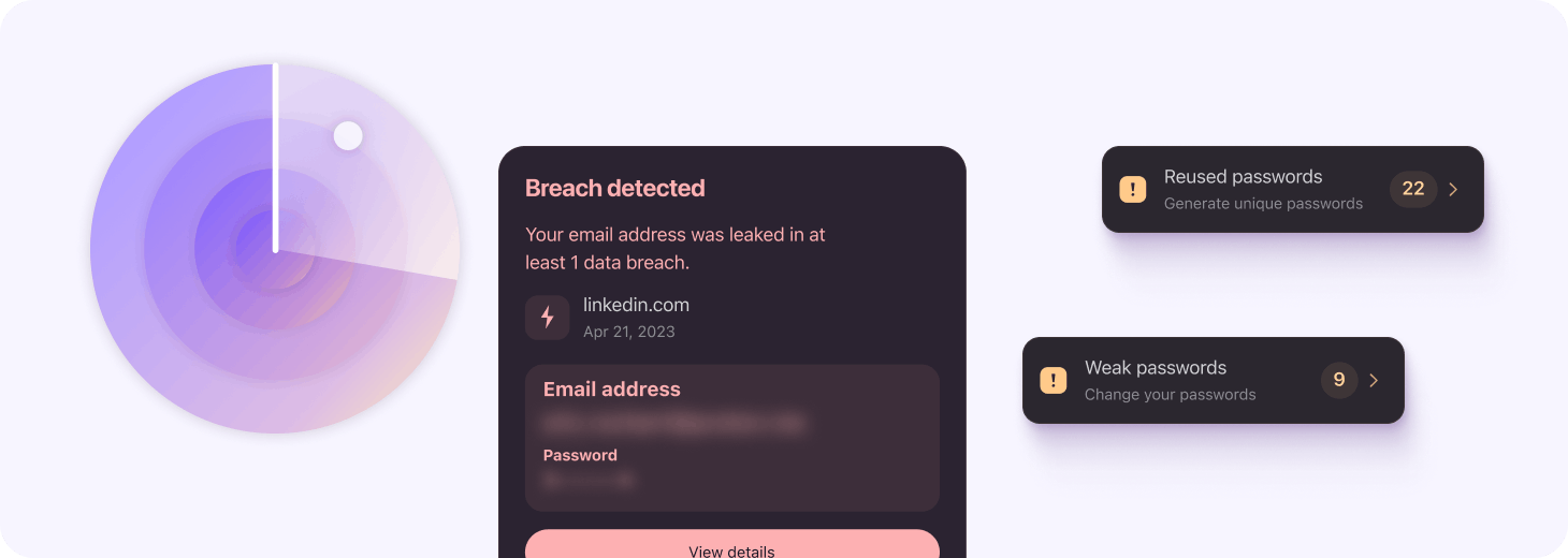 Pass Monitor è il nostro centro di sicurezza avanzato che offre informazioni pratiche per migliorare la sicurezza dell'account. Con Pass Monitor puoi controllare l'integrità delle password, ricevere avvisi sulla violazione delle email tramite il nostro monitoraggio del dark web e scoprire i campi con l'autenticazione 2FA inattiva.