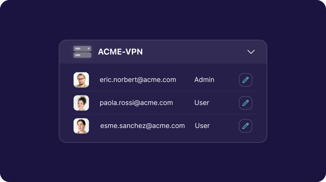 ログインを制限し、承認されたデバイスのみがプライベートゲートウェイを使用してネットワークにアクセスできるようにします。 権限を割り当て、セグメント化することで、従業員が必要なものだけを閲覧できるようにします。