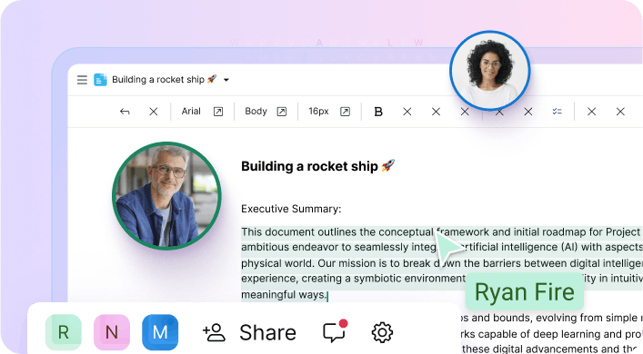 Create, edit, and collaborate on documents in real time with Docs in Proton Drive. Every keystroke is shielded from prying eyes, giving you the freedom to work with others knowing your privacy is never at risk.