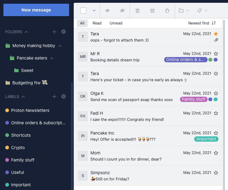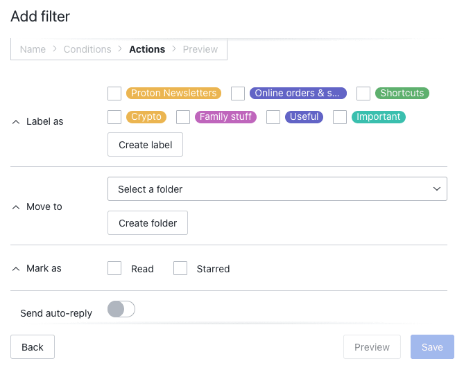 Maybe you still want to be on certain email lists and unsubscribing from all your newsletters isn’t an ideal solution. When you use Proton Mail, you can create email aliases to filter your newsletters and subscriptions so they don’t jam up your inbox — and to keep your email address private.