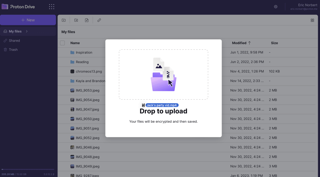 - Drag and drop the file from your desktop to Proton Drive. You can also select multiple files and folders to upload.
