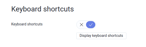 You can click the Display keyboard shortcuts button (shown above) for a full list of shortcuts available. These are also listed in our keyboard shortcuts support page and can be brought up at any time within the Proton Mail V4 web app using the ? key (Ctrl + / on many keyboards).