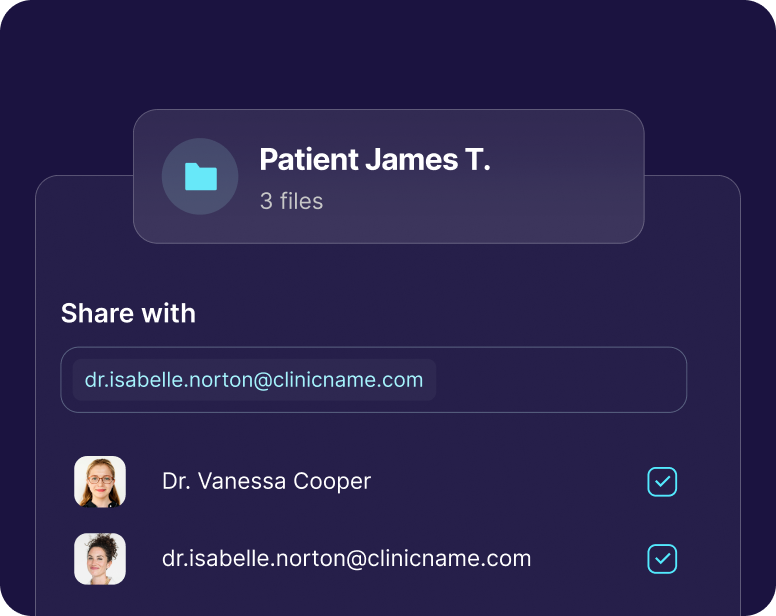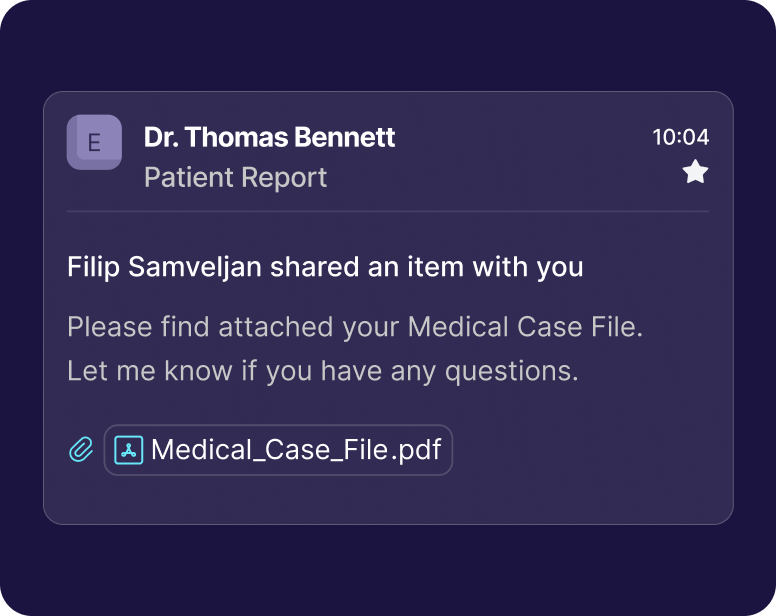 환자가 빠르고 HIPAA를 준수하는 2차 소견을 위해 전문가와 의료 기록을 공유할 수 있도록 하여 진단에 대한 신뢰도를 높입니다.