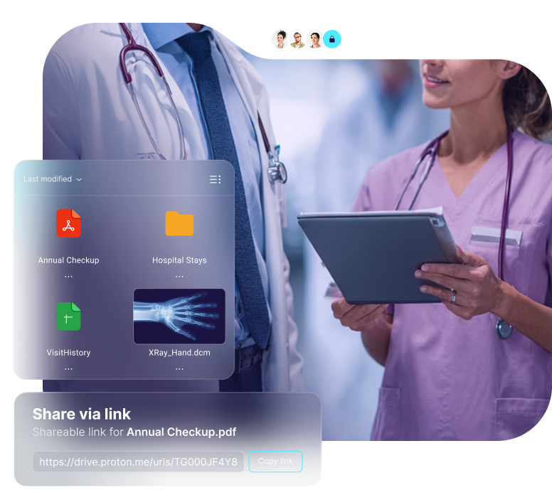 Proton Drive는 의료 전문가와 환자를 지원하는 동시에 HIPAA 개인정보 보호 및 보안 표준 준수를 간소화합니다.
