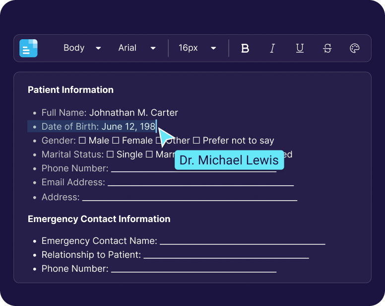서류 작업을 줄이고 온라인으로 환자와 동의서를 공유하여 환자가 서명된 계약서에 안전하게 접근, 검토 및 업로드할 수 있도록 합니다.
