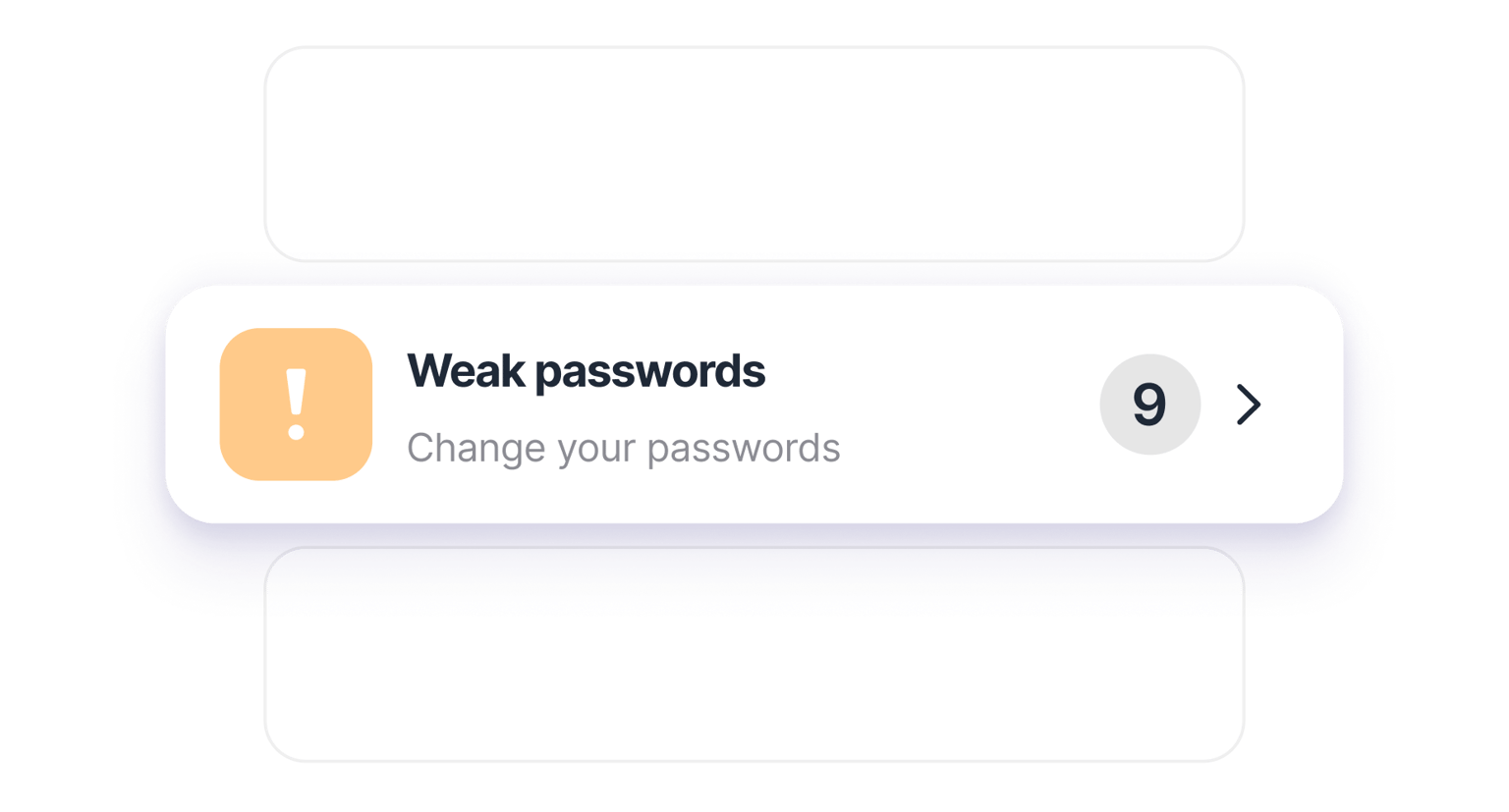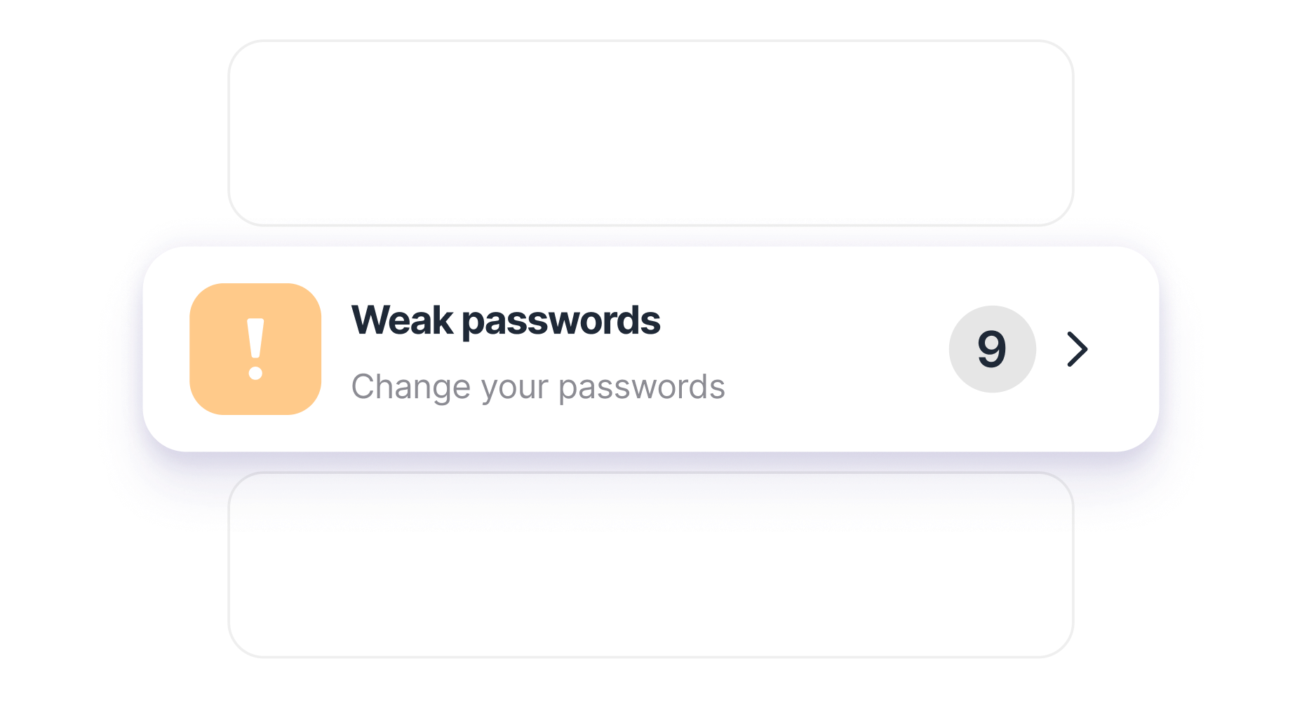 취약하거나 재사용된 비밀번호에 대한 알림을 받고 최적의 보안을 위해 쉽게 변경하세요.
