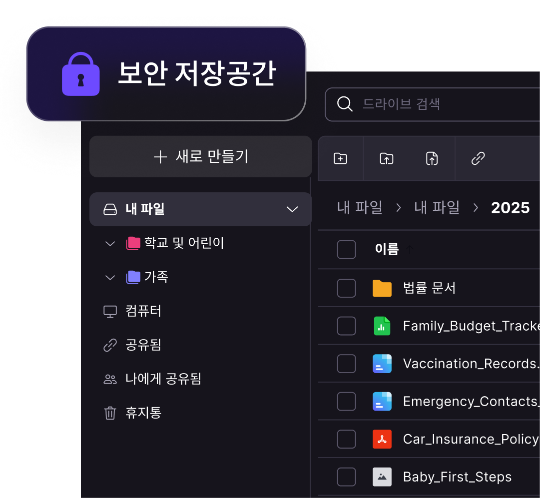개인 노트 및 기타 개인 데이터를 보안 저장소에 업로드하세요.