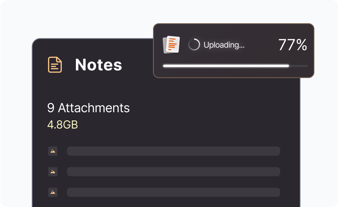 Proton Pass는 최대 100MB의 모든 파일 유형을 지원합니다. PDF, 이미지, 동영상, 스프레드시트 등 쉽게 접근해야 하는 모든 것을 업로드하세요.
