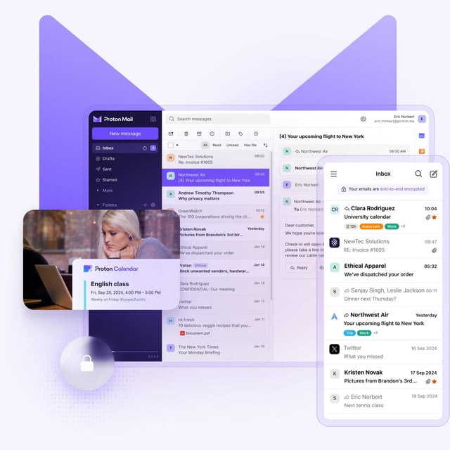 수업 노트를 보내거나, 부업 정보를 공유하거나, 친구와 채팅할 때 모든 이메일은 종단 간 암호화로 보호되므로 귀하와 수신자만 읽을 수 있습니다. 염탐꾼으로부터 벗어나 이메일을 DM보다 더 비공개로 만드세요.