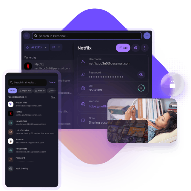 더 이상 모든 곳에 'password123'을 사용하지 마세요. 탭 한 번으로 모든 비밀번호가 암호화되고, 자동 완성되며, 기기 간에 동기화됩니다. TikTok, 은행 계좌, 또는 새로운 스트리밍 구독을 보호할 때 Proton이 지켜드립니다. 귀하의 개인정보는 추측 가능한 비밀번호보다 더 강력하게 보호받을 가치가 있으니까요.