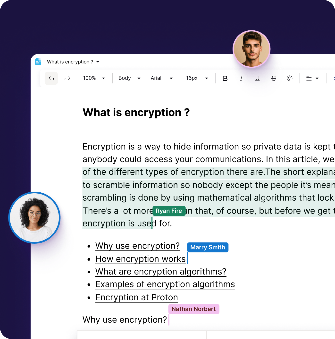 Work and collaborate securely with end-to-end encrypted cloud storage and document editing