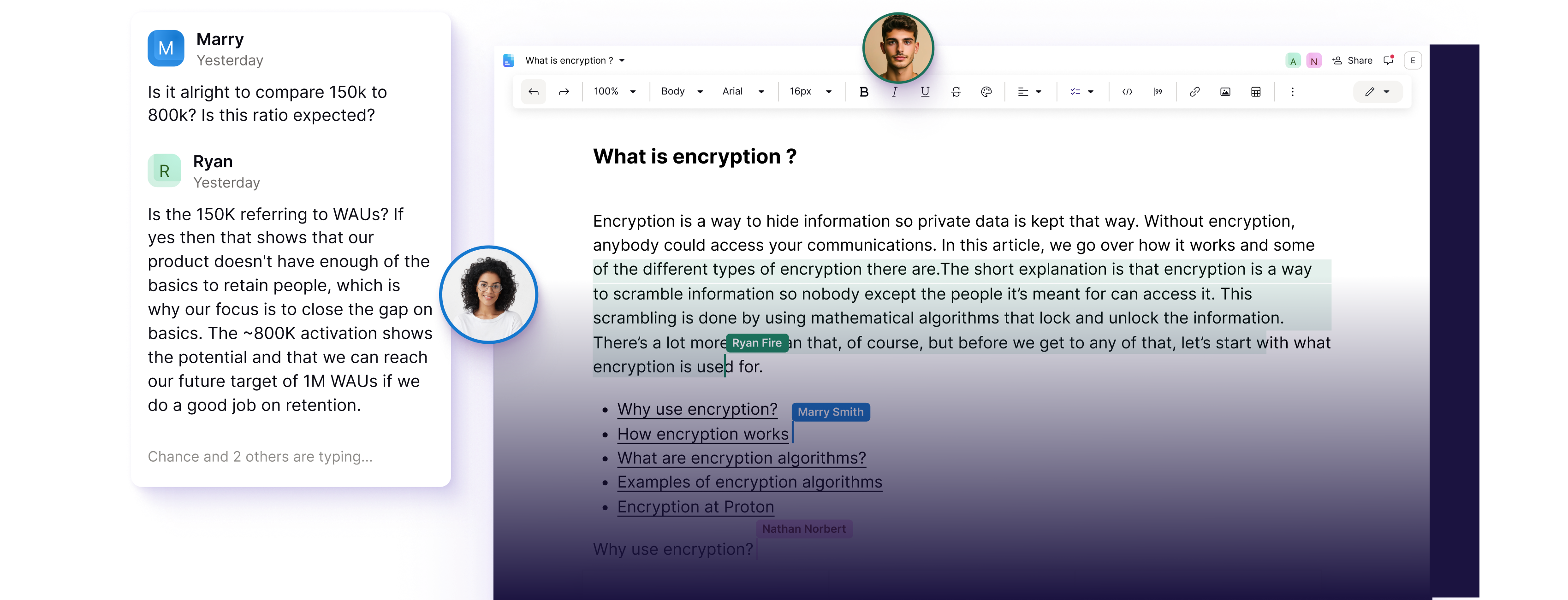 Docs in Proton Drive lets you collaborate on documents in real-time without compromising your privacy. Every keystroke is end-to-end encrypted, so your work will never be analyzed, shared, or monetized.