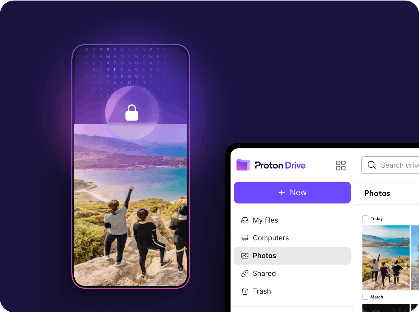 Automatic photo backup on the Proton Drive mobile app protects your most cherished memories by regularly uploading photos to your secure cloud.