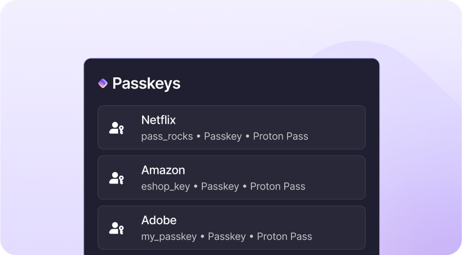 Passkeys are an easy and secure alternative to traditional passwords that prevent phishing attacks and make your online experience smoother. Proton Pass supports passkeys on all platforms.
