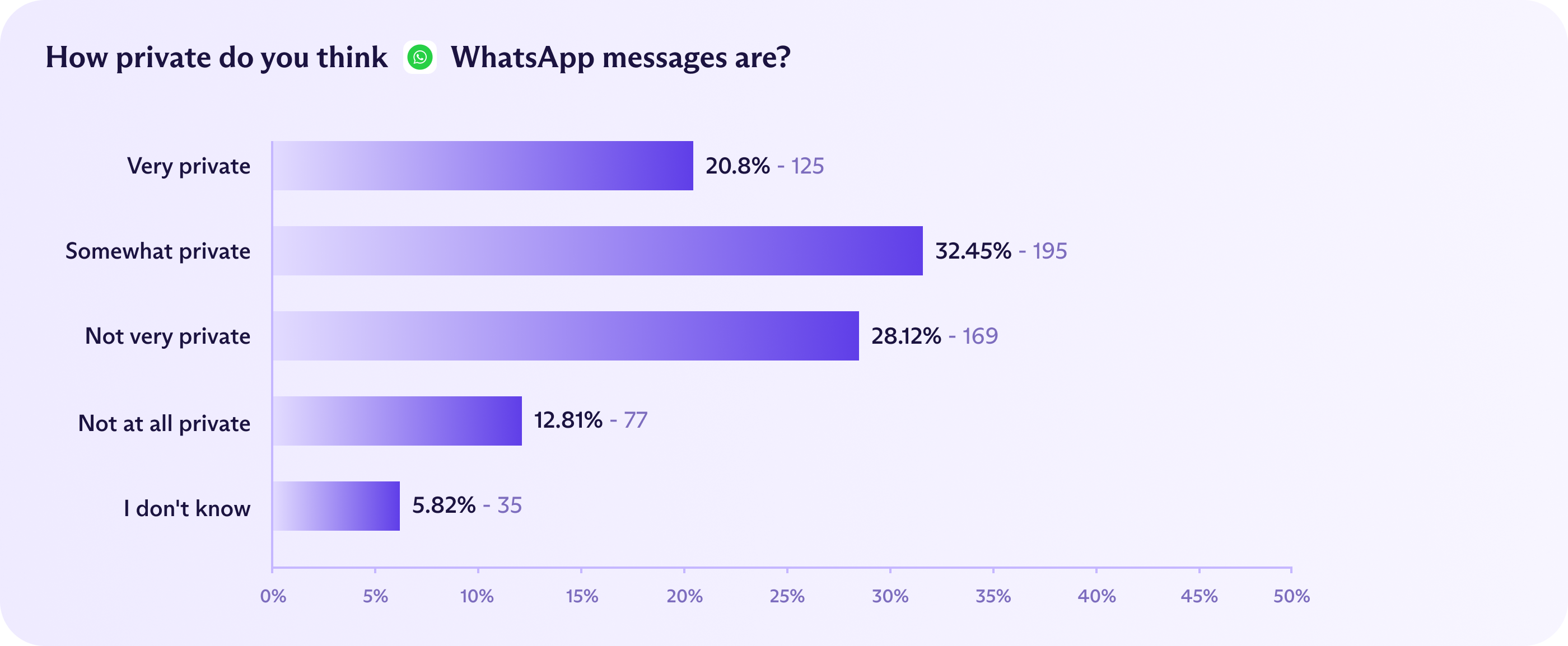Awareness of WhatsApp limitations seems mixed. Nearly half of Germans (48%) said they already knew it collected metadata, like timestamps and contacts, and 46% said they already knew Meta, WhatsApp’s parent company, shared that metadata with governments around the world.
