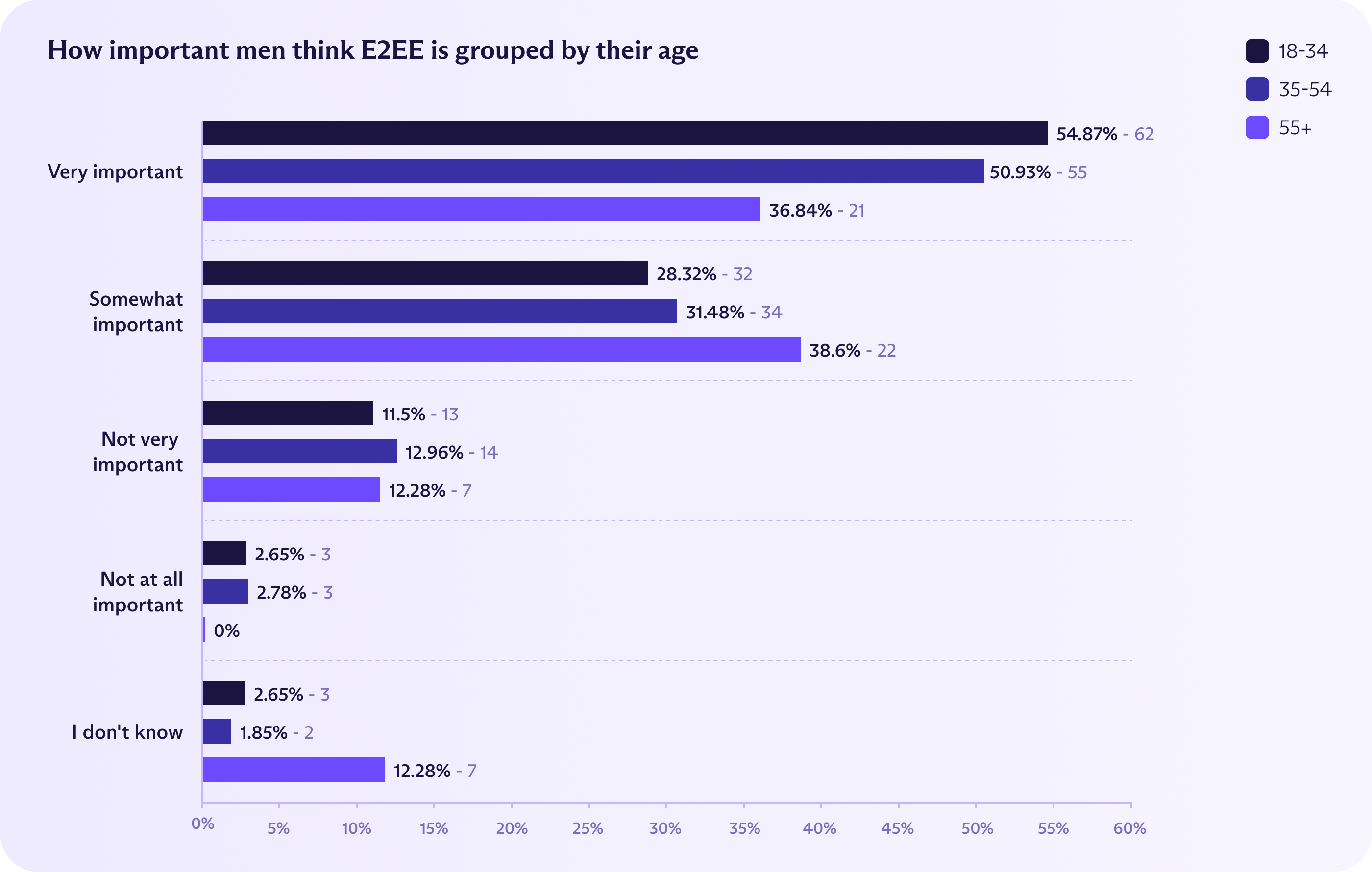 However, 47% of women between the ages of 35 and 54 and women over the age of 55 said E2EE was important, much higher than men over 55 (37%) or women under 34 (41%).