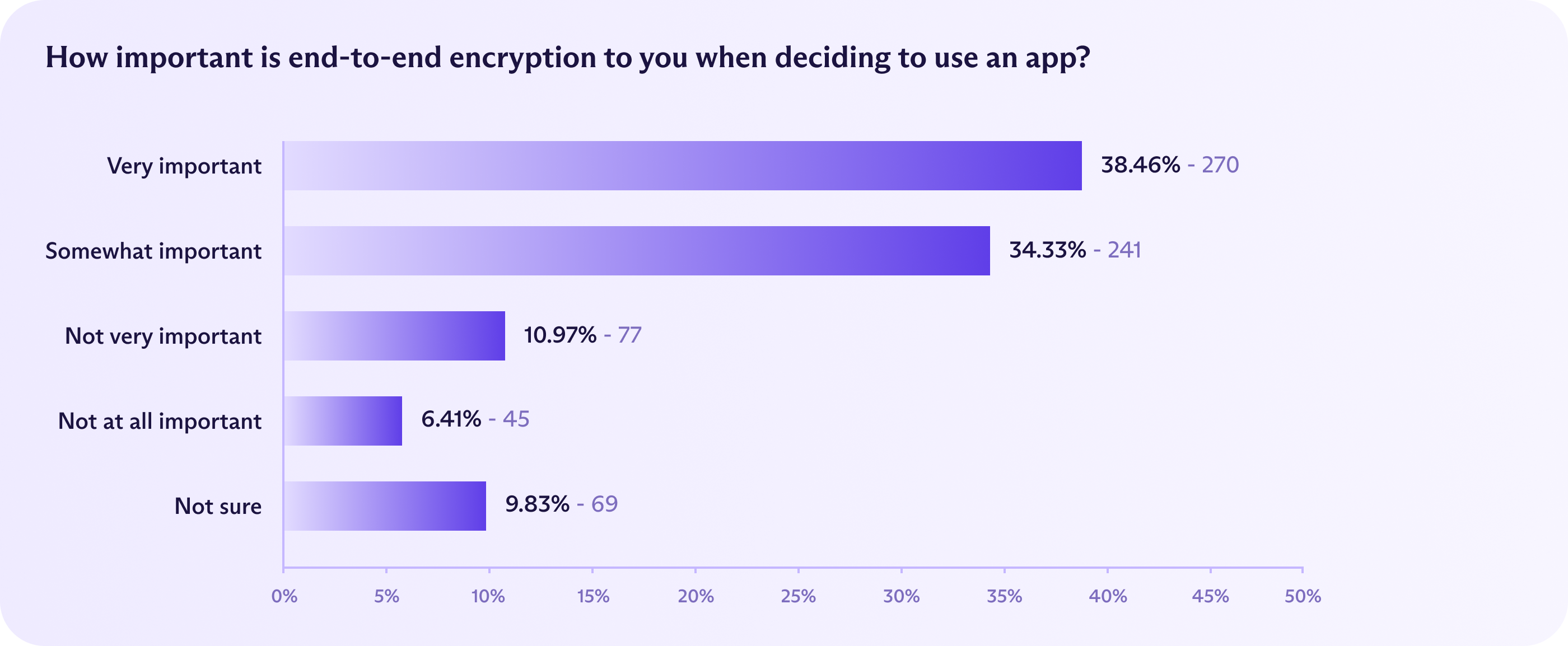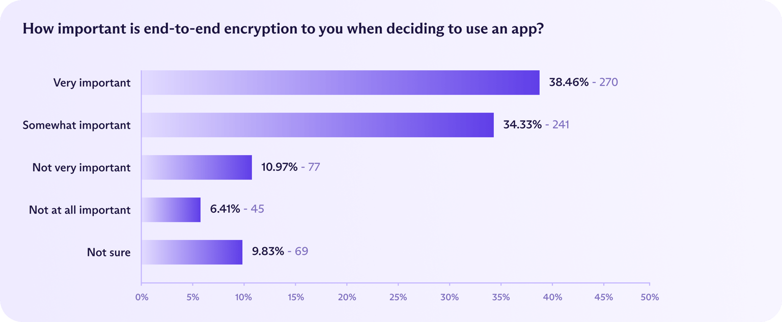 In the UK, people with higher incomes were more likely to say that E2EE mattered. Among respondents filtered by income, 49% said encryption was “very important” when choosing an app, with 41% more calling it “somewhat important.”