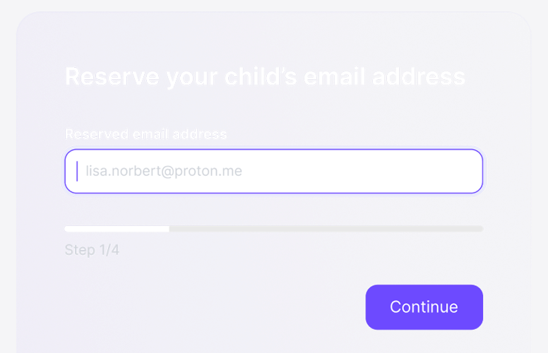 You activate your child's email address and their Proton Mail account is created — fully private, fully theirs.