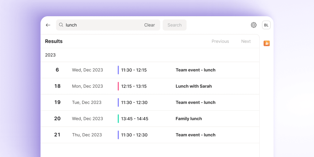 - Search your calendar with end-to-end encryption.