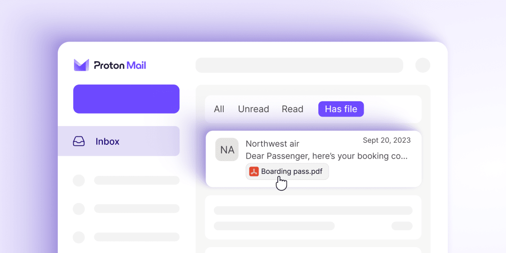 - Quickly find attachments with the “has file” filter, and preview them right from the message list.