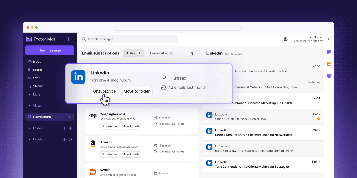 Newsletter view lets you eliminate the stress of an overstuffed inbox. You can now view and manage all your email subscriptions in one place with no digging through your inbox required. See everything you’re subscribed to, unsubscribe from what you no longer read, and set up rules to automatically move or mark incoming newsletters. It’s a simple way to cut through inbox clutter and stay in control.