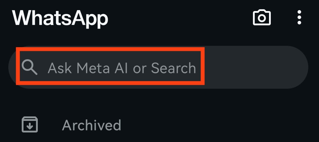 - In the search bar at the top, labeled Ask Meta AI or Search, similar to Facebook. You can type a question or prompt here to interact directly with the AI.