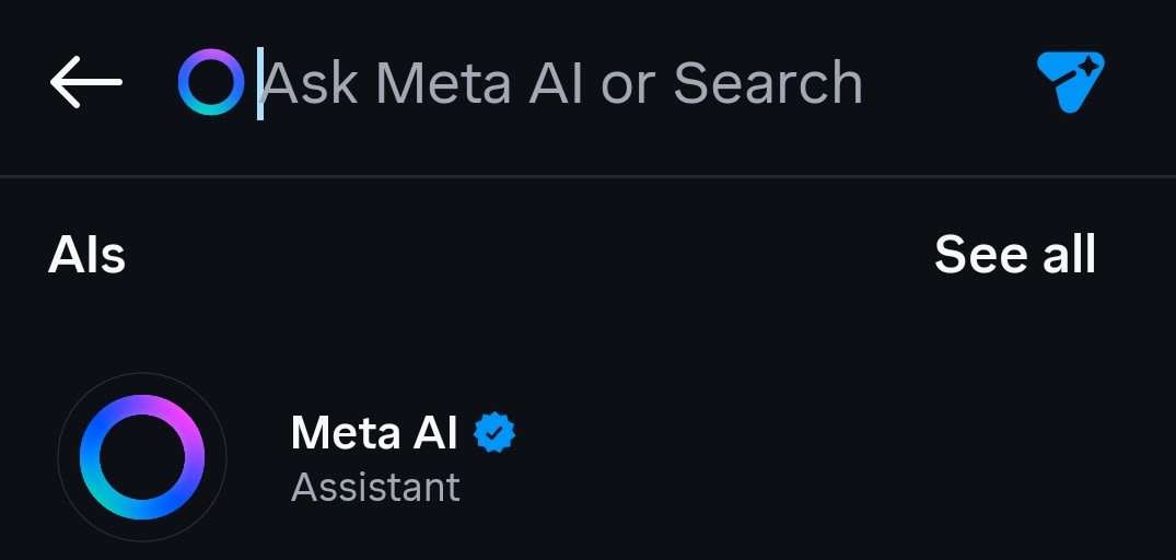 - As an icon in the lower-right corner of your messages screen, which opens a separate one-on-one chat with Meta AI.