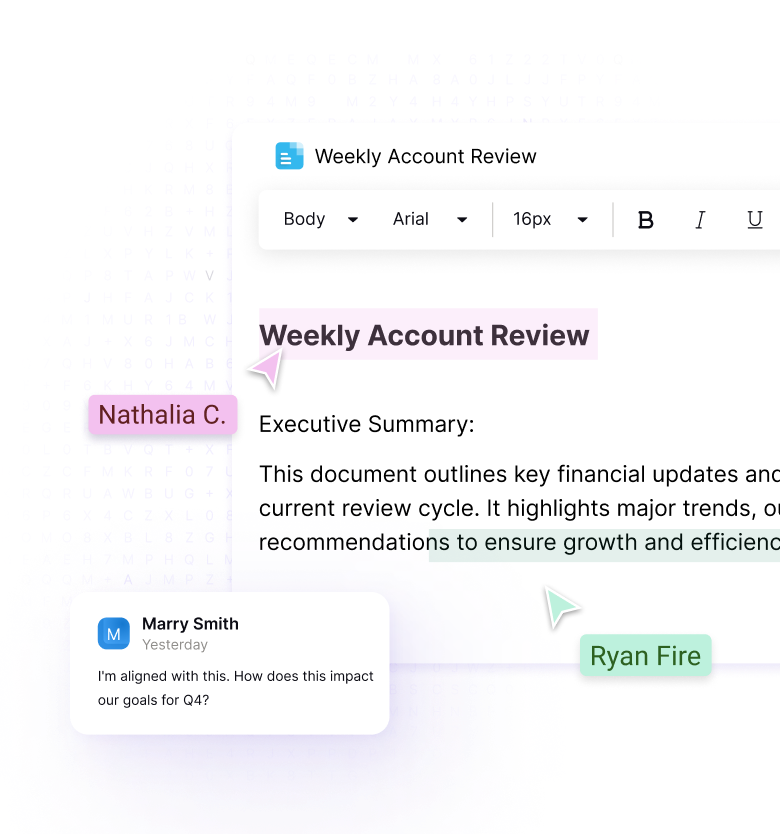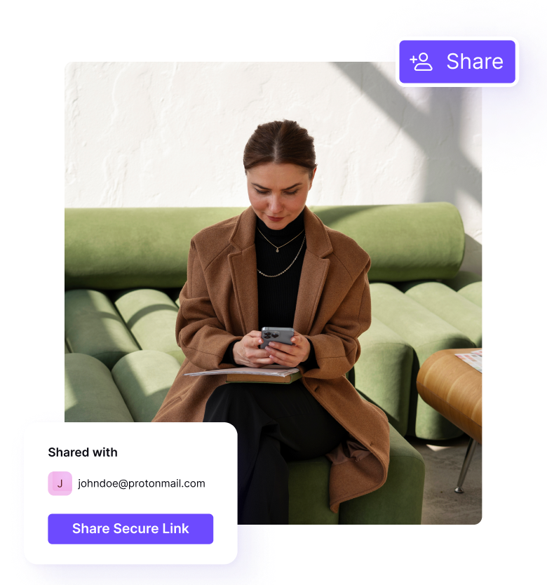 Maak documenten, deel feedback en beheer mappen met klanten en collega's — zelfs als zij geen Proton-account hebben. Alle updates zijn direct zichtbaar, zodat iedereen op de hoogte blijft, ongeacht waar u zich bevindt.