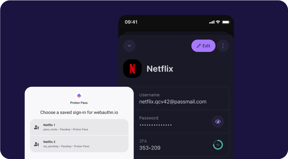 Proton Pass secures your data with the same zero-knowledge, end-to-end encryption that protects Proton Mail. That means no one else, not even Proton, can access your passwords, items, or files unless you share them.