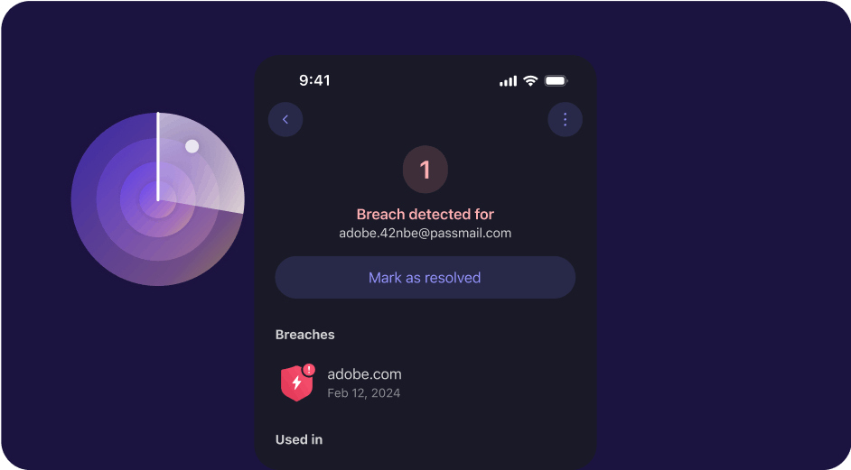 Receive immediate alerts if your personal information is leaked in a third-party data breach. You can monitor multiple email addresses or your own domain name.
