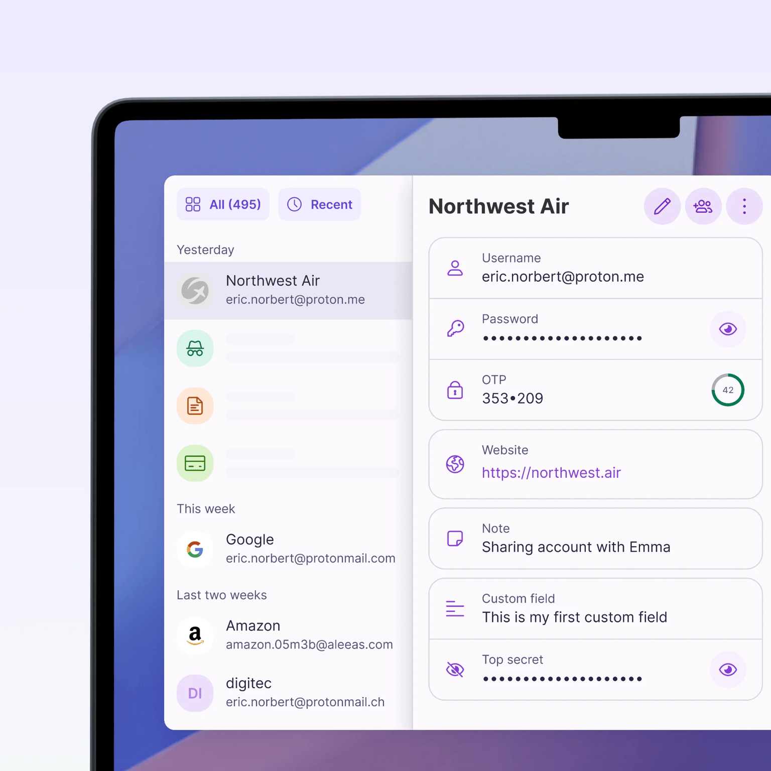 Generuj i przechowuj silne hasła za pomocą menedżera haseł, który automatycznie synchronizuje się na wszystkich Twoich urządzeniach i ostrzega o naruszeniach.