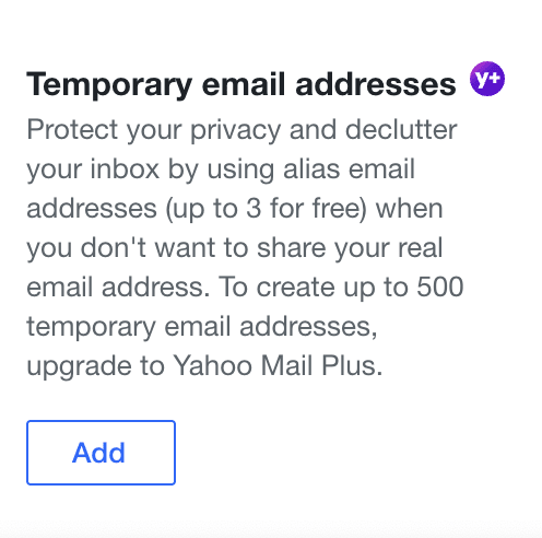 Yahoo! offers the ability to add a “disposable account” under your already-existing email address, which is similar to creating an alias. To create a disposable Yahoo! account, you must first sign in using your existing Yahoo! email address.