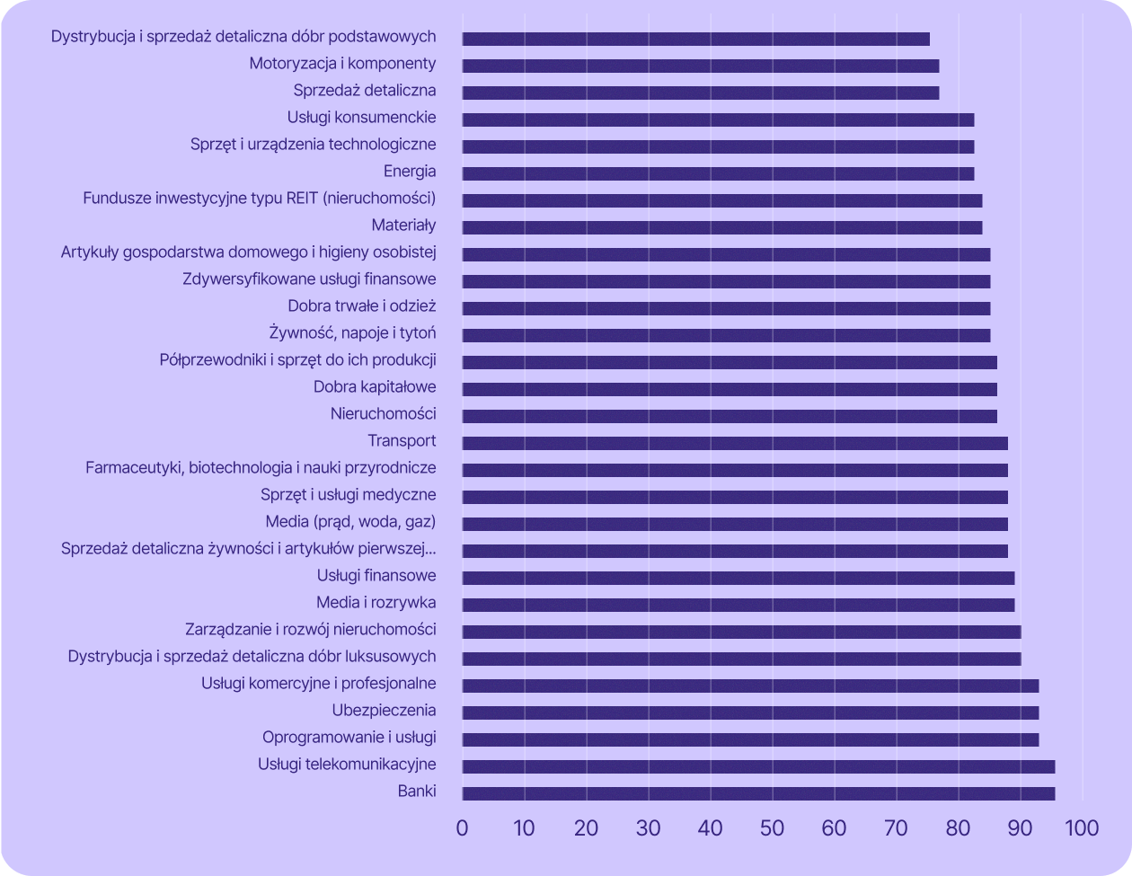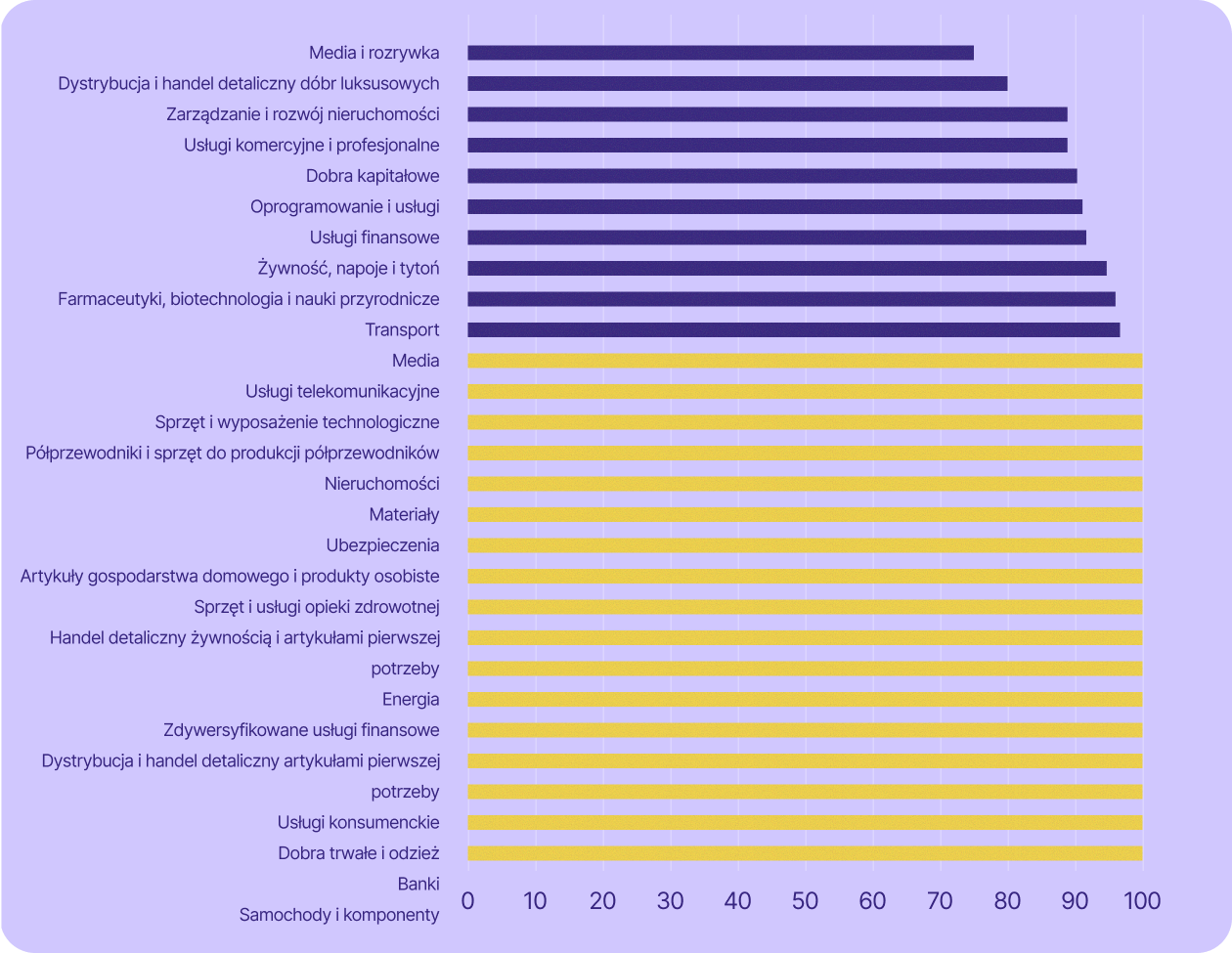 W celu zapewnienia rzetelności statystycznej nie podajemy wyników na poziomie krajowym dla krajów, w których znaleźliśmy mniej niż 30 spółek giełdowych. W rezultacie kraje takie jak Czechy, Estonia, Łotwa, Litwa, Słowacja i Słowenia nie są uwzględniane indywidualnie, ale ich wyniki są włączone do naszych ogólnoeuropejskich szacunkowych średnich i wartości procentowych.