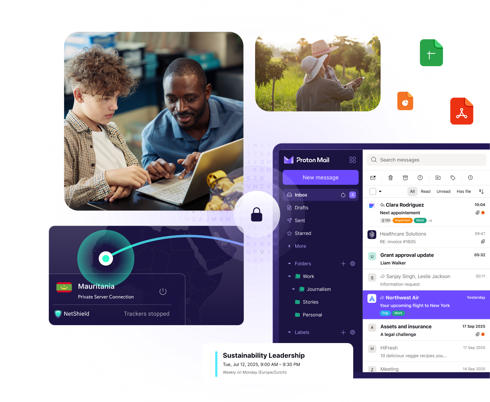 Zaszyfrowane narzędzia Proton i zniżki dla organizacji non-profit pomagają chronić poufne dane, współpracować w bezpieczny sposób i osiągać efekty – w przystępnej cenie.