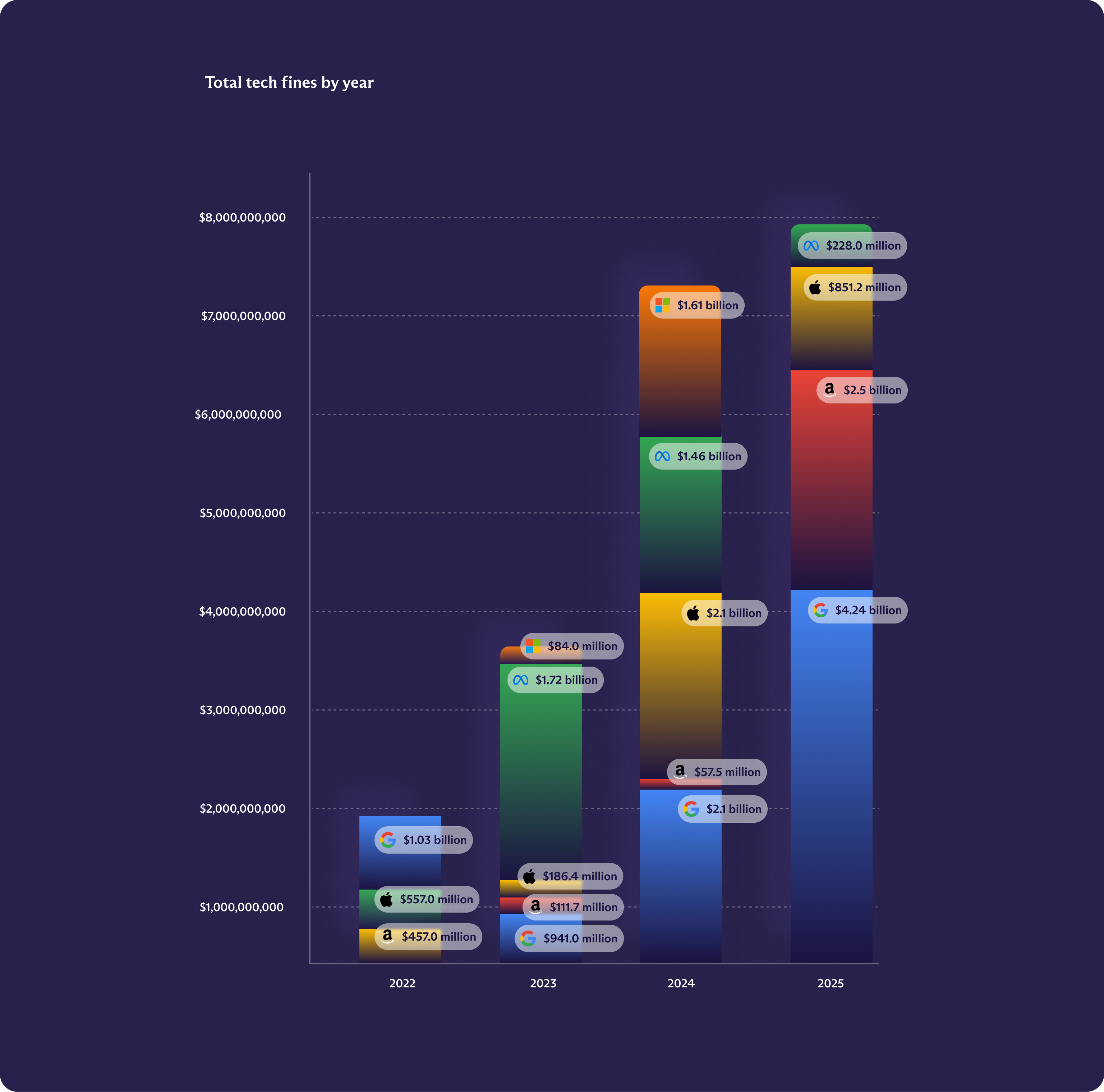W 2024 roku rządy na całym świecie nałożyły na niektóre z największych firm technologicznych na świecie – Apple, Google, Meta, Amazon i Microsoft – łącznie 8,2 miliarda dolarów kar. Na pierwszy rzut oka może się wydawać, że władze w końcu pociągają wielkie firmy technologiczne do odpowiedzialności. Ale bliższe spojrzenie ujawnia brutalną rzeczywistość.