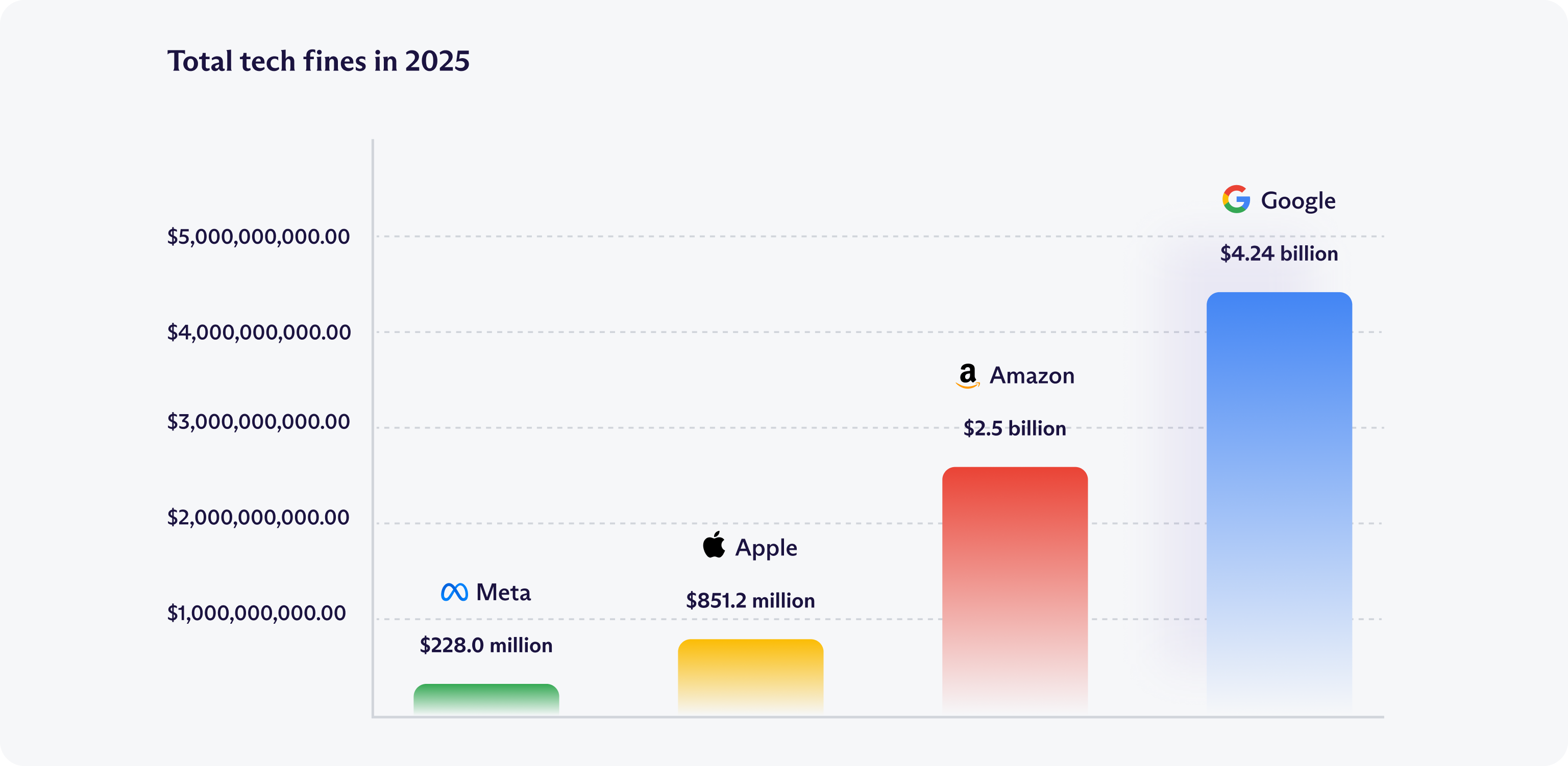 Łączne kary w 2025 r. | 851 200 000 USD | 4,24 mld USD | Jeszcze nie podano | 228 000 000 USD | 2,5 mld USD |