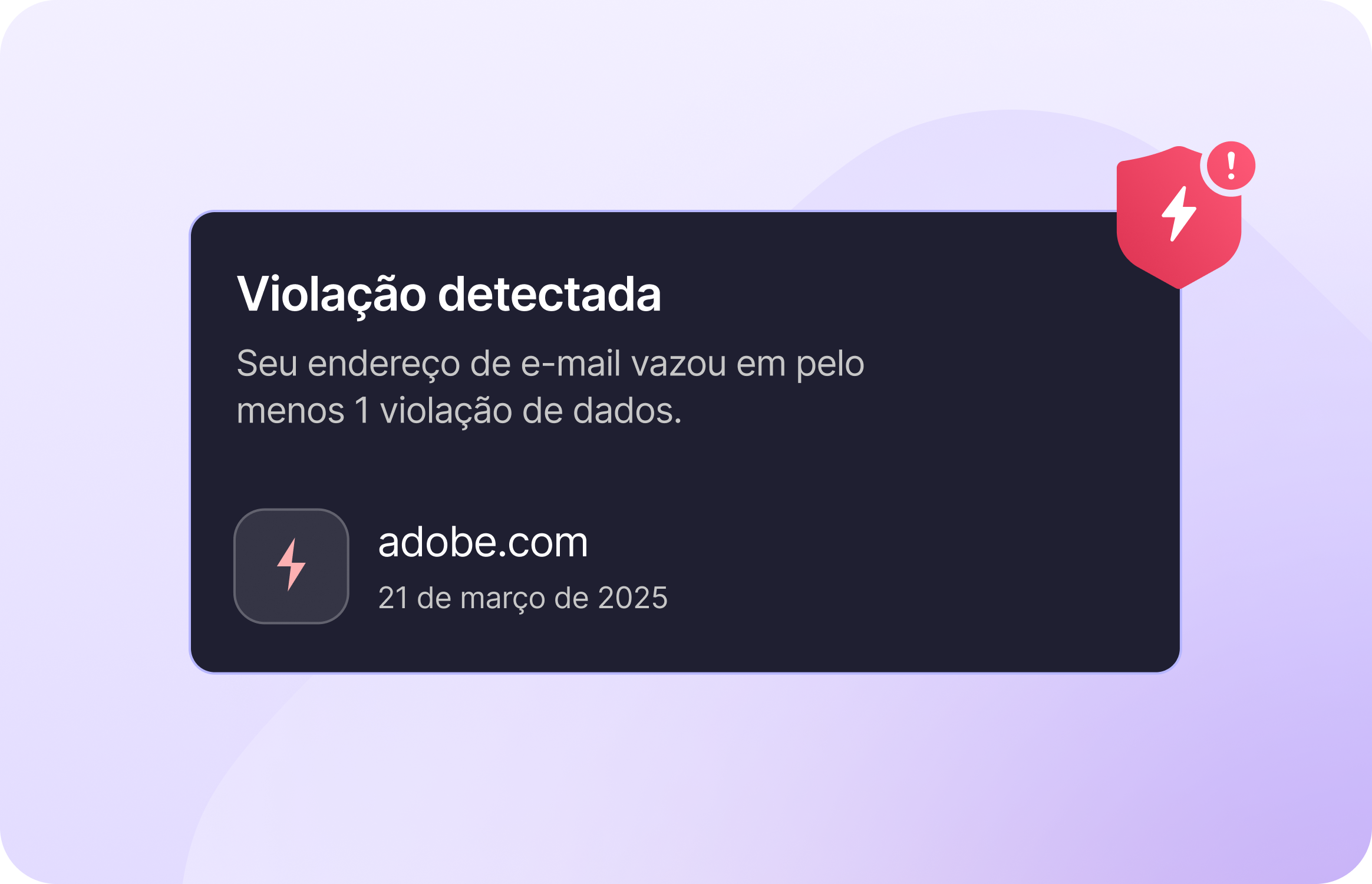Receba alertas imediatos se suas informações pessoais forem vazadas em uma violação de dados de terceiros. Você pode monitorar vários endereços de e-mail ou seu próprio nome de domínio.