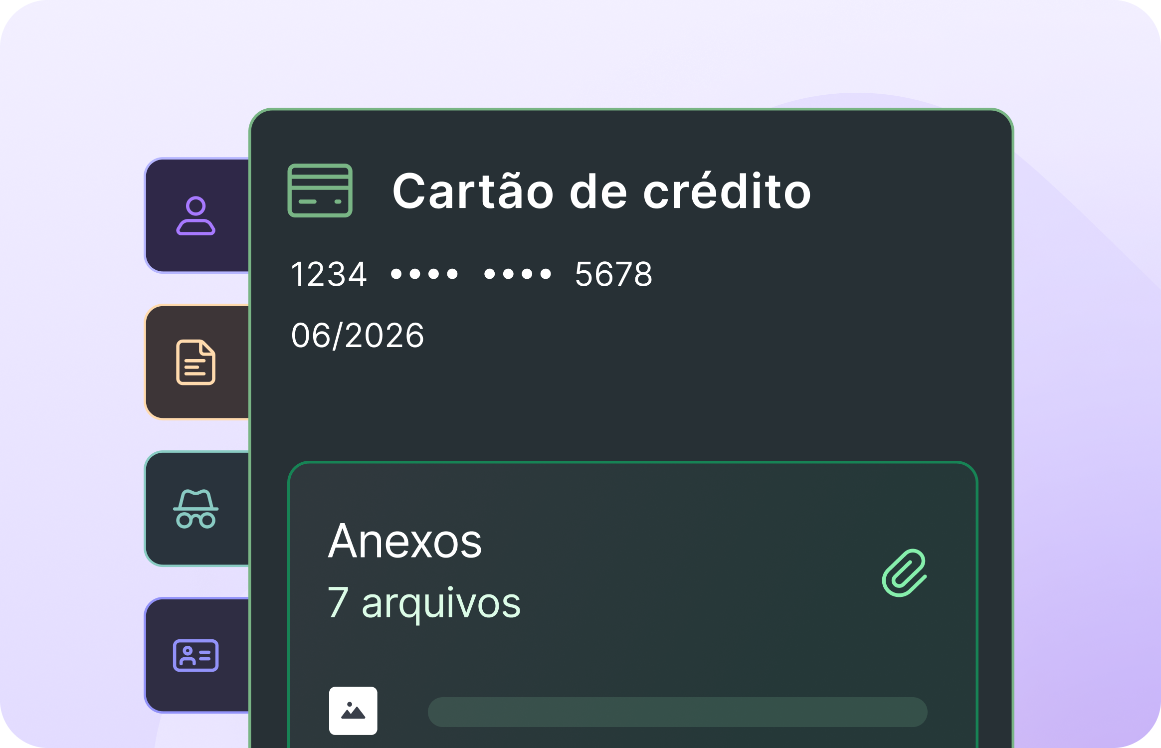Organize e simplifique sua vida digital. Ao criar uma senha, identidade ou nota no Proton Pass, você também pode anexar arquivos, o que permite armazenar todas as informações relevantes para uma conta específica em um local seguro.