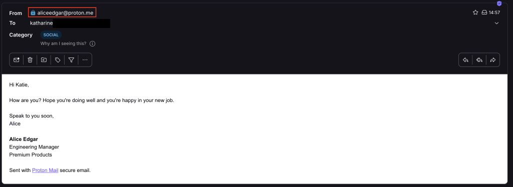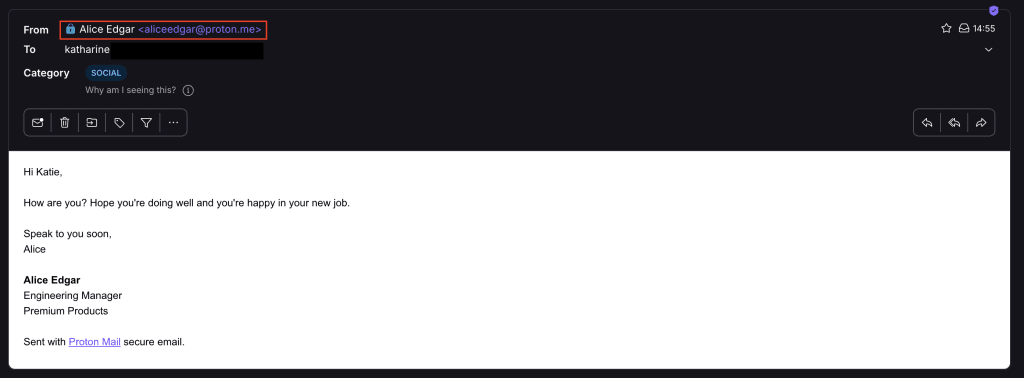 And here is how the same email appears when the display name is set to Alice Jones: