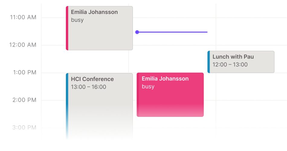 View your colleagues’ availability at a glance and set up meetings in just a few clicks.