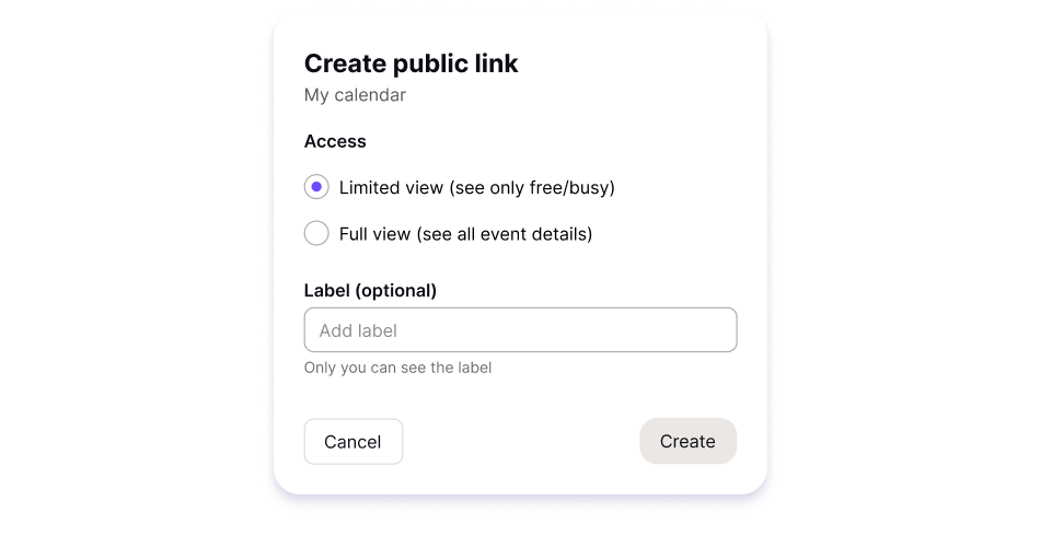 Add calendars outside of Proton easily via an external link, and view all events from your own calendar.