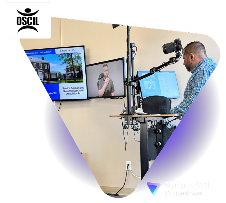 Astăzi, OSCIL folosește Proton VPN pentru a securiza aproximativ 20 de angajați. Echipa se bazează pe Proton VPN pentru accesarea sigură a sistemelor esențiale, indiferent dacă lucrează de acasă, dintr-un azil de bătrâni sau de la domiciliul unui client dintr-un stat.