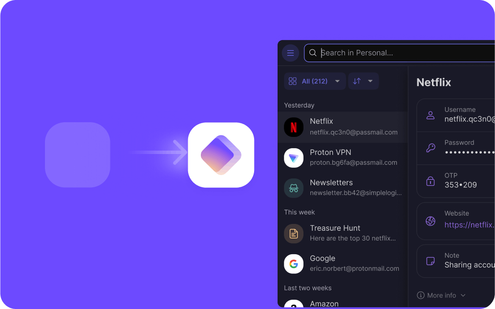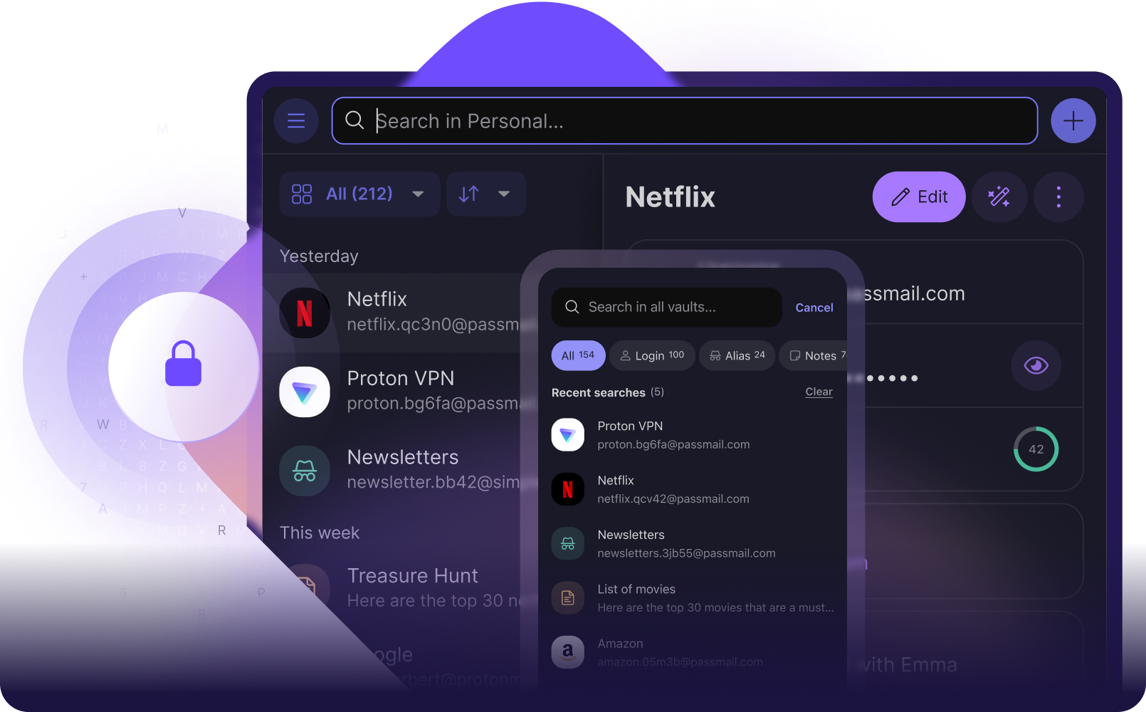 Proton Pass secures your passwords and identity with end-to-end encryption.