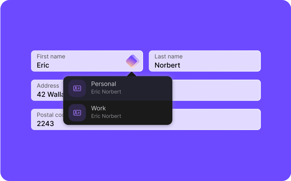 Autofill passwords, forms, and 2FA passcodes on all desktop and mobile devices with one click or tap. Log in with passkeys on supported sites.