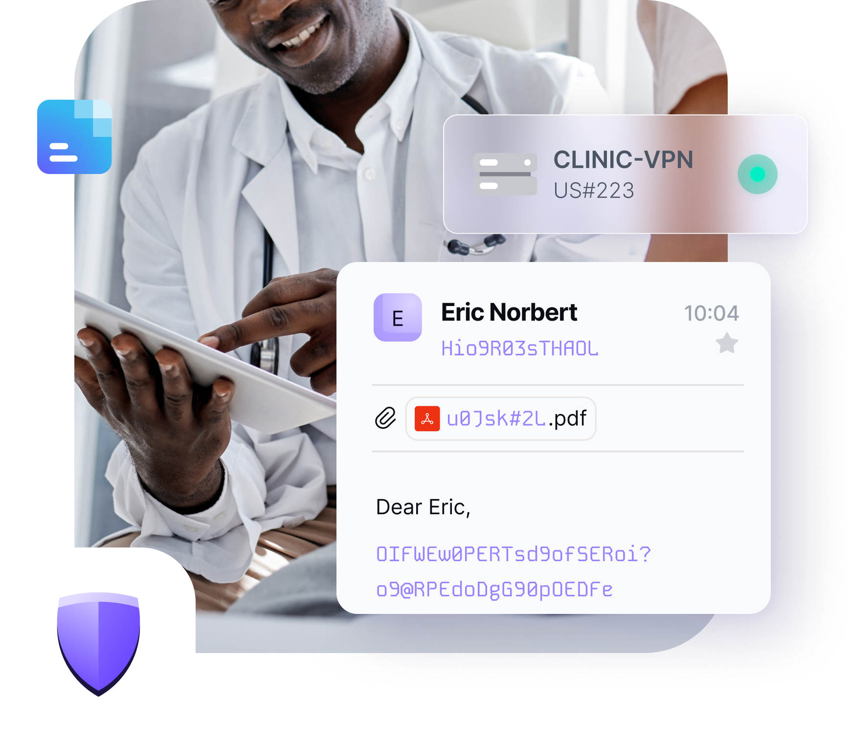 Proton по умолчанию зашифрован сквозным методом, что означает, что файлы ваших пациентов, электронная переписка и сеть надёжно защищены.