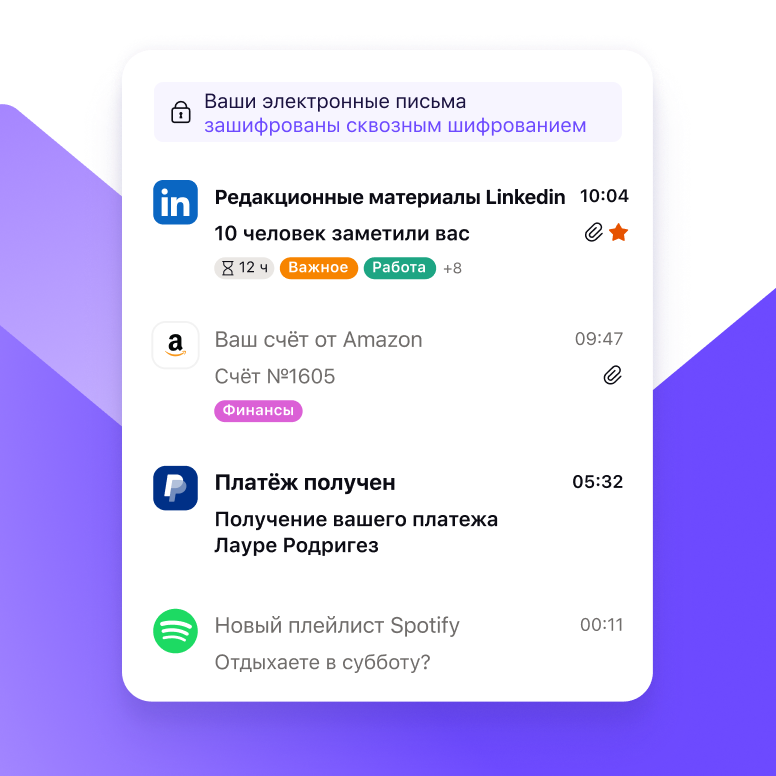 Proton Mail использует сквозное шифрование и шифрование с нулевым доступом, поэтому только вы можете читать свои электронные письма. Даже наши специалисты не имеют доступа к содержимому электронных писем и вложений пользователей.